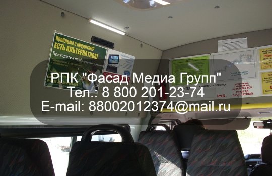 РПК «Фасад Медиа Групп» разместило рекламу для нашего клиента в маршрутках. Формат рекламы: стикеры размером 210х297 мм. Период размещения: 1 мес. Арендовано порядка 100 машин