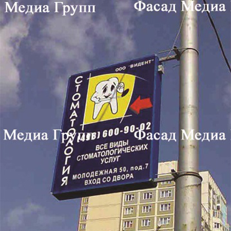 Примеры рекламы на панель-кронштейнах представлены на фото: