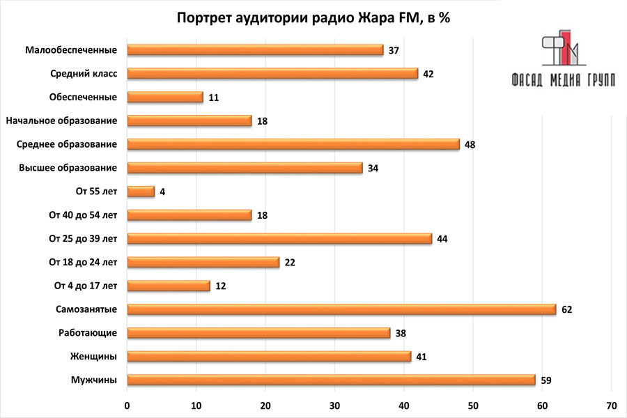 Благодаря качественному, сбалансированному контенту аудитория «Жара ФМ» многочисленна и разнообразна.