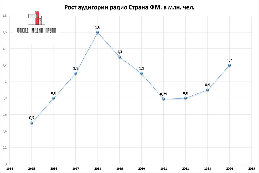 «Страна ФМ» – это популярная радиостанция, сбалансированный эфир которой привлекает большую аудиторию радиослушателей. Каждый год радиостанция демонстрирует высокие показатели по охвату аудитории.