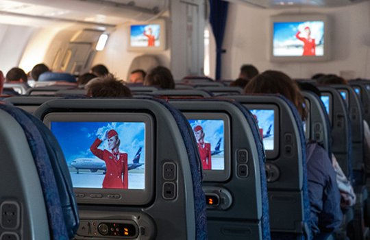 Реклама на мониторах в самолетах на фото выше