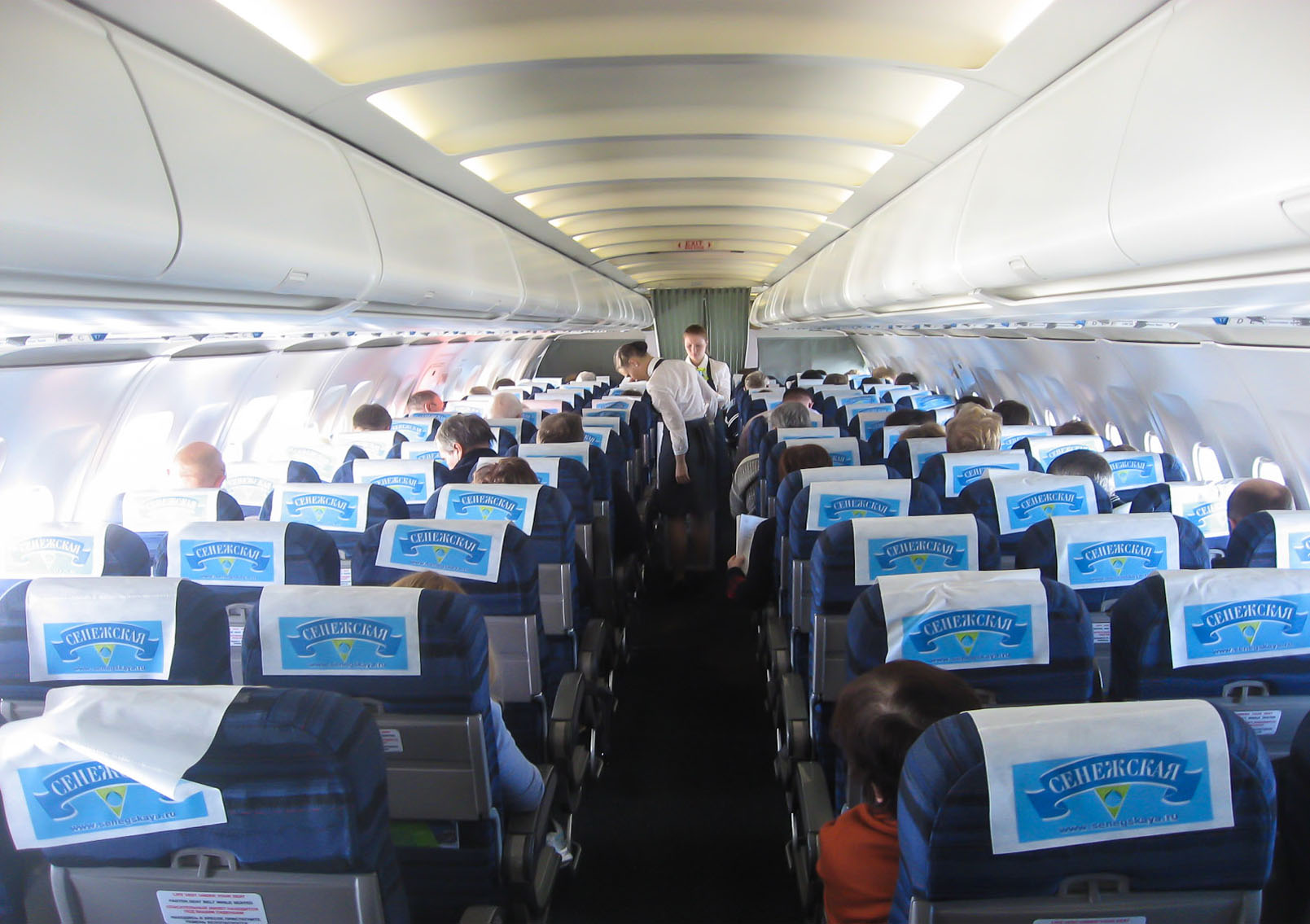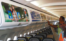 Реклама на спинках кресел в самолетах на фото выше