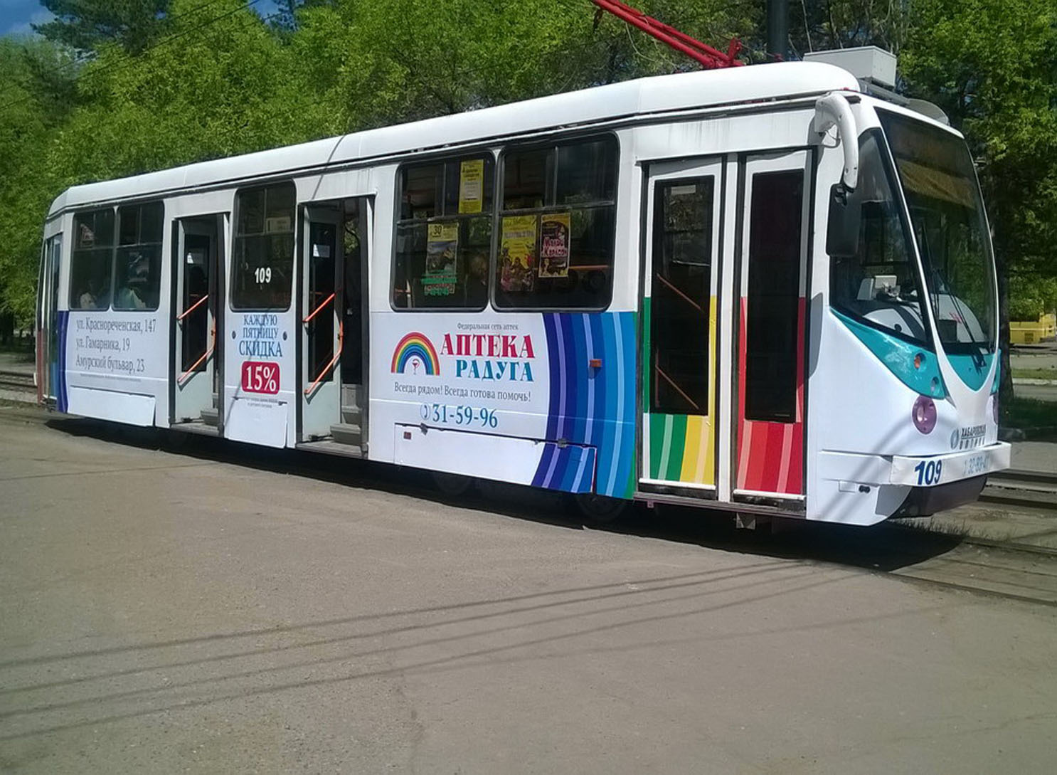 Рекламное агентство «Фасад Медиа Групп» предлагает большой выбор маршрутов, гибкие условия размещения рекламы на/в трамваях в Химках и Московской области, выгодные цены. Для получения коммерческого предложения по размещению рекламы на/в трамваях обращайтесь по телефону: 8 800 201-23-74 или оставьте заявку на сайте. Размещение рекламы на/в трамваях «под ключ» гарантируем!