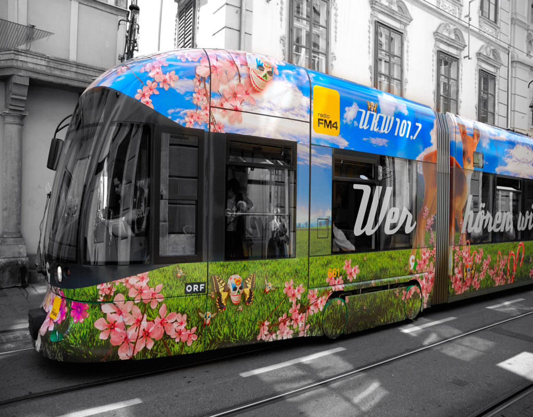 Полная оклейка трамвая на фото выше
