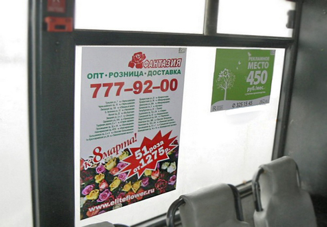 Необходимо заметить, что доверие должна вызывать не только организация, но и товар, который она предлагает. Покупатель с лёгкостью приобретает товар или заказывает услугу, если ранее получил о товаре или услуге положительный отзыв или имеет собственный положительный опыт. Как добиться того, чтобы предлагаемый товар или услуга вызывали доверие у потенциальных покупателей или заказчиков? Одним из действенных способов является размещение рекламы внутри салона транспортного средства или на его бортах.