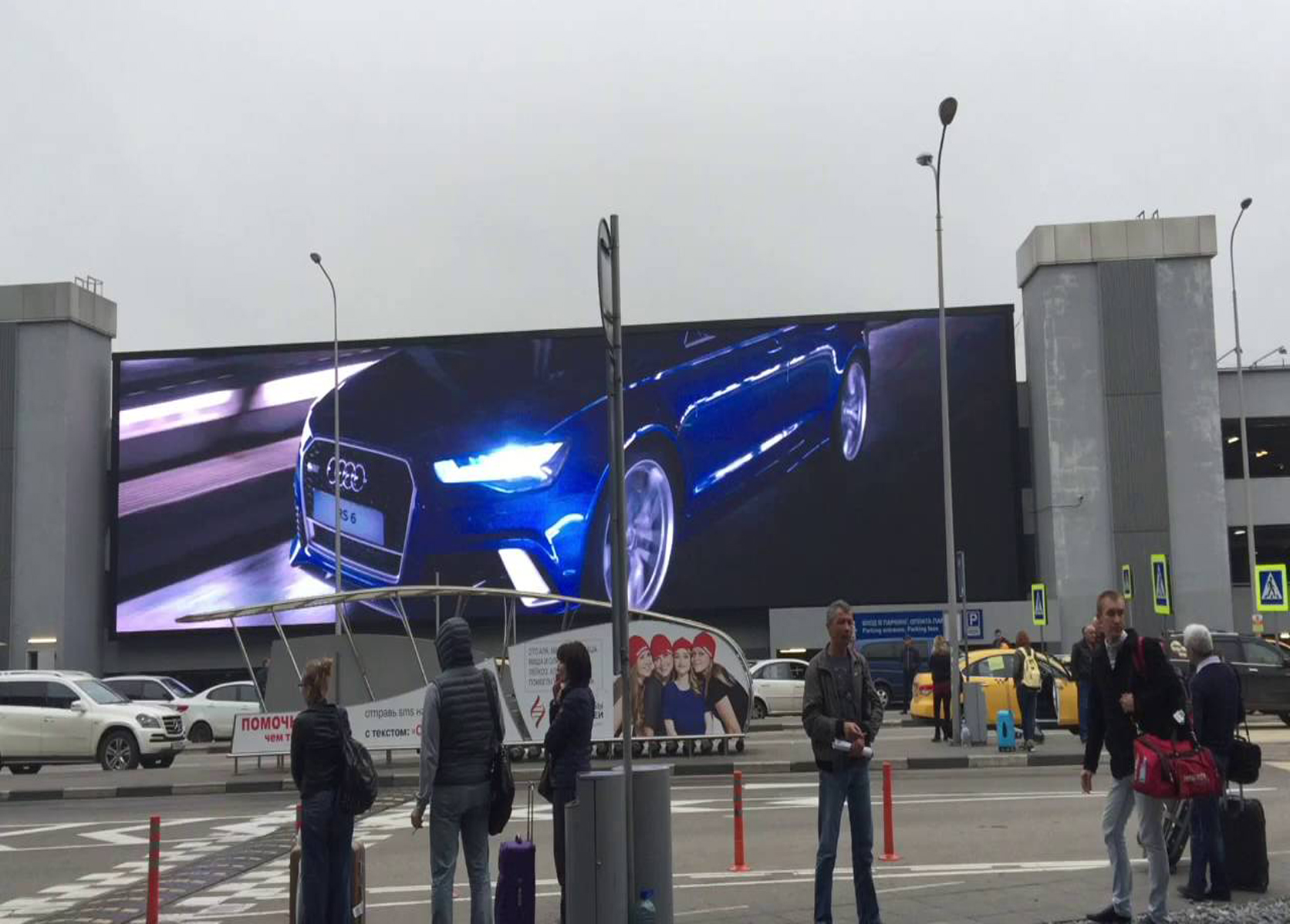 Пример рекламы на видеоэкране возле здания аэропорту: