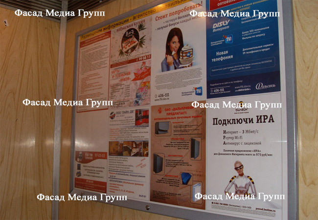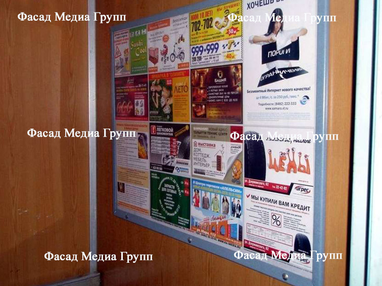 В условиях городской среды размещение информации в лифтах является эффективным средством продвижения бренда организации, поддержания внимания к вашему бизнесу, привлечения новых клиентов и удержания старых покупателей и заказчиков. Именно реклама в лифтах помогает горожанам увидеть необходимую рекламную информацию. Реклама в лифтах способствует быстрому распространению информации, хорошей заметности рекламного материала, делает рекламную кампанию еще более эффективной, а бизнес прибыльным. Для размещения рекламы в лифтах обращайтесь в рекламное агентство «Фасад Медиа Групп». Будем рады сотрудничеству.