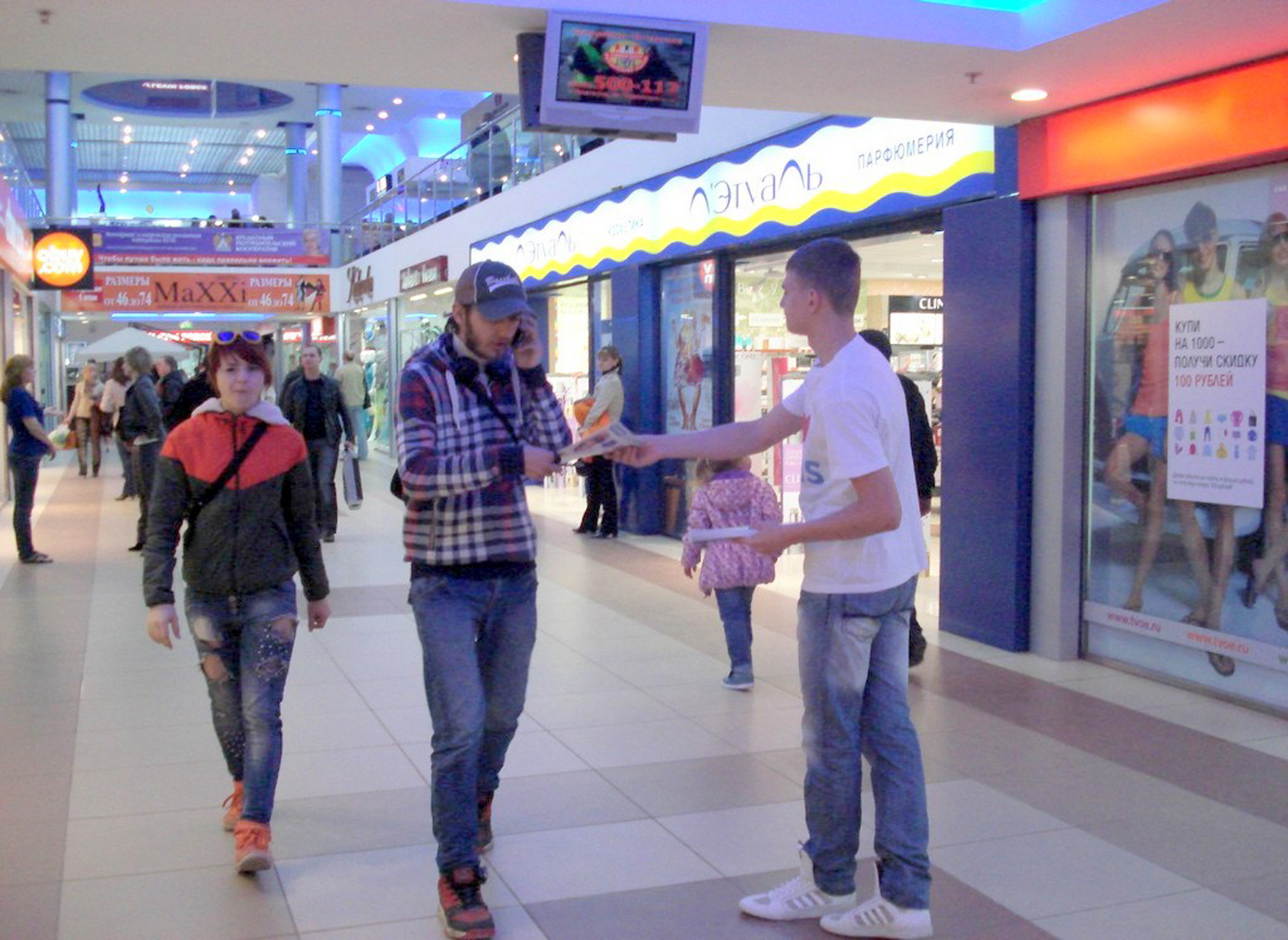 Реклама в торговых центрах отличается тем, что рекламные материалы располагаются на уровне глаз потенциального клиента или покупателя. Удачное расположение рекламы приводит к тому, что листовки, буклеты и другие форматы рекламы в торговых центрах хорошо видны и обеспечивают 100% читаемость со стороны посетителей.